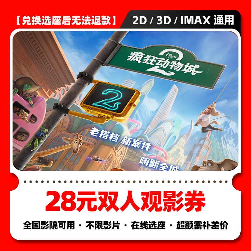 【疯狂动物城2】20元单人电影票团购券 电影票抖音团票 电影票优惠NO.2昨日销量25万-50万